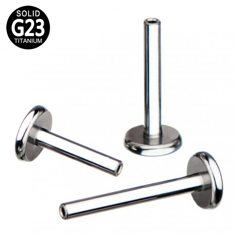 A versatile implant-grade titanium labret post with an internally threaded connection and flat back for secure, comfortable everyday wear.