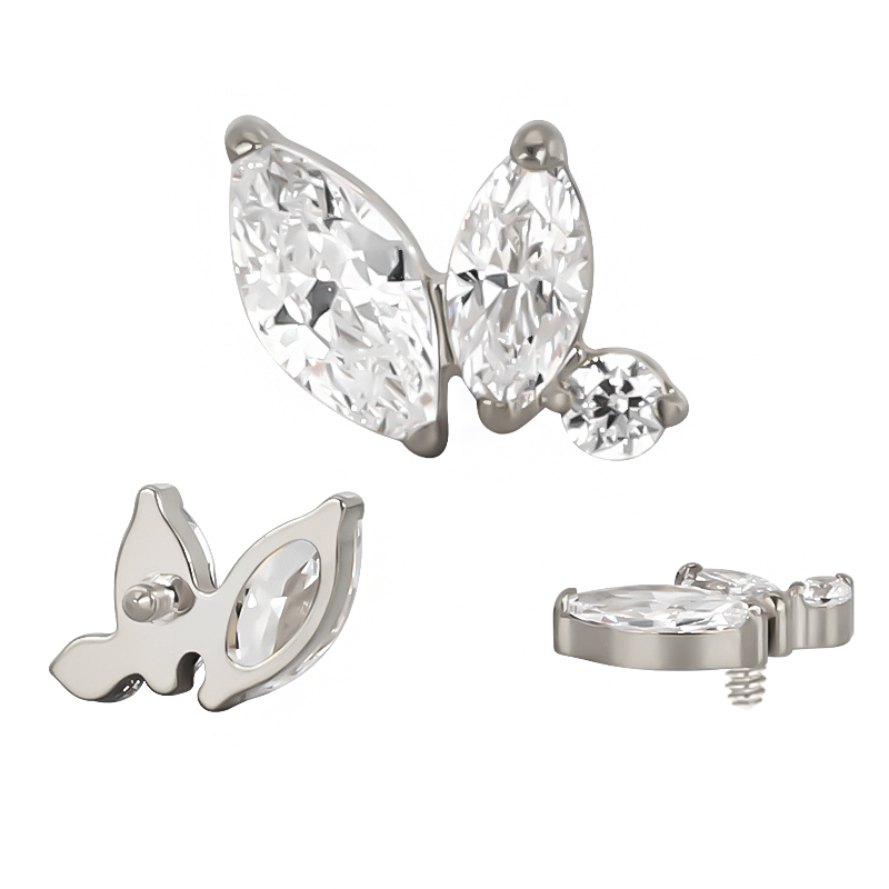 Titanium CNC Set Double Marquise & Double Round CZ Internally Threaded Top M0.9 (16G)