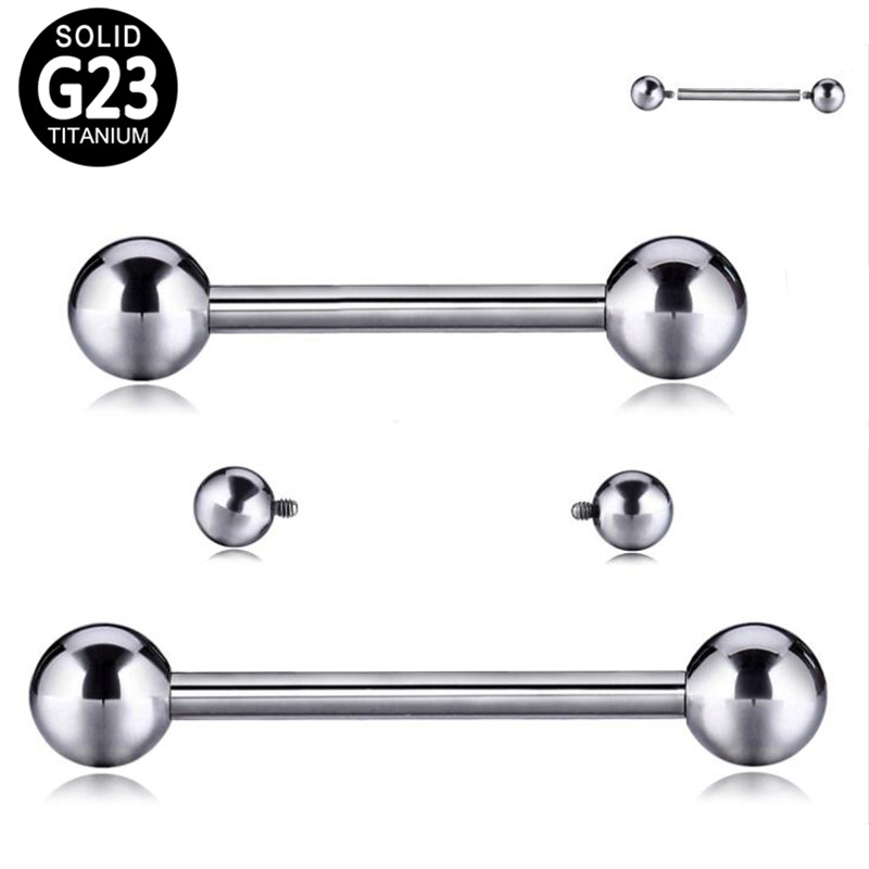 A professional essential. Implant-grade titanium straight barbells with secure internal threading and 5mm ball ends, available in 1.2mm (16G) and 1.6mm (14G) with multiple length options.