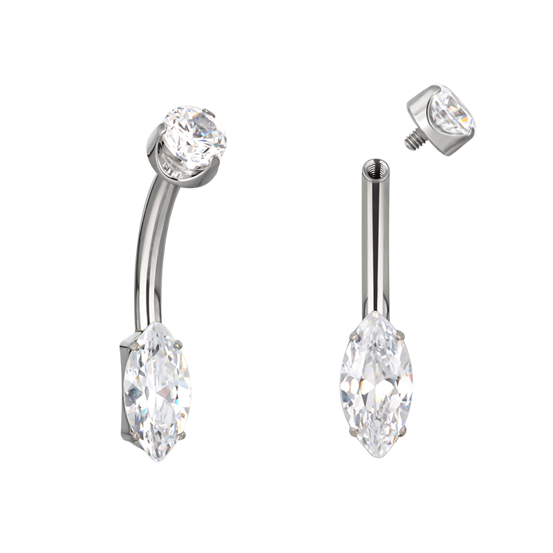Titanium Prong-Set Marquise CZ Belly Button Ring – 1.6mm (14G) × 10mm