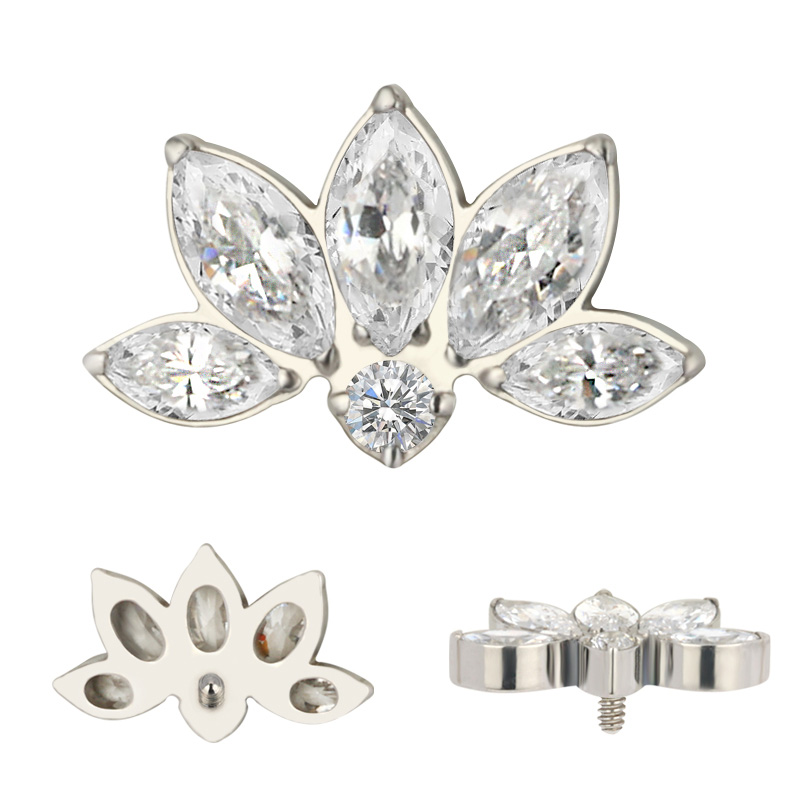 A radiant focal piece. This implant-grade titanium cluster top features four marquise-cut CZs fanning around a brilliant round centre stone, delivering refined sparkle with timeless elegance.
